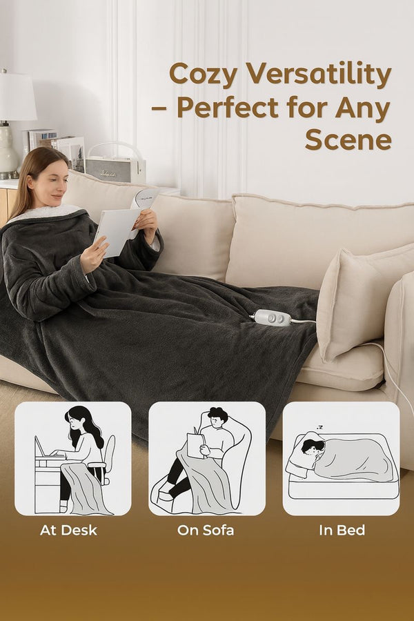 Advanced heating system warms evenly from shoulders to feet. No more hot spots or cold toes — feel consistent comfort that lets you relax, sleep, or work without layering up.